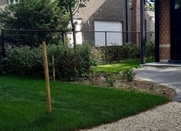 Deze statige woning gelegen in de groene rand rond Antwerpen snakt naar een sluitend groen kader. De tuinarchitect voorzag hiervoor een passend plan met een minimum aan sluitende verhardingen om voldoende waterinfiltratie te behouden maar met het comfort voor een vlotte toegang.