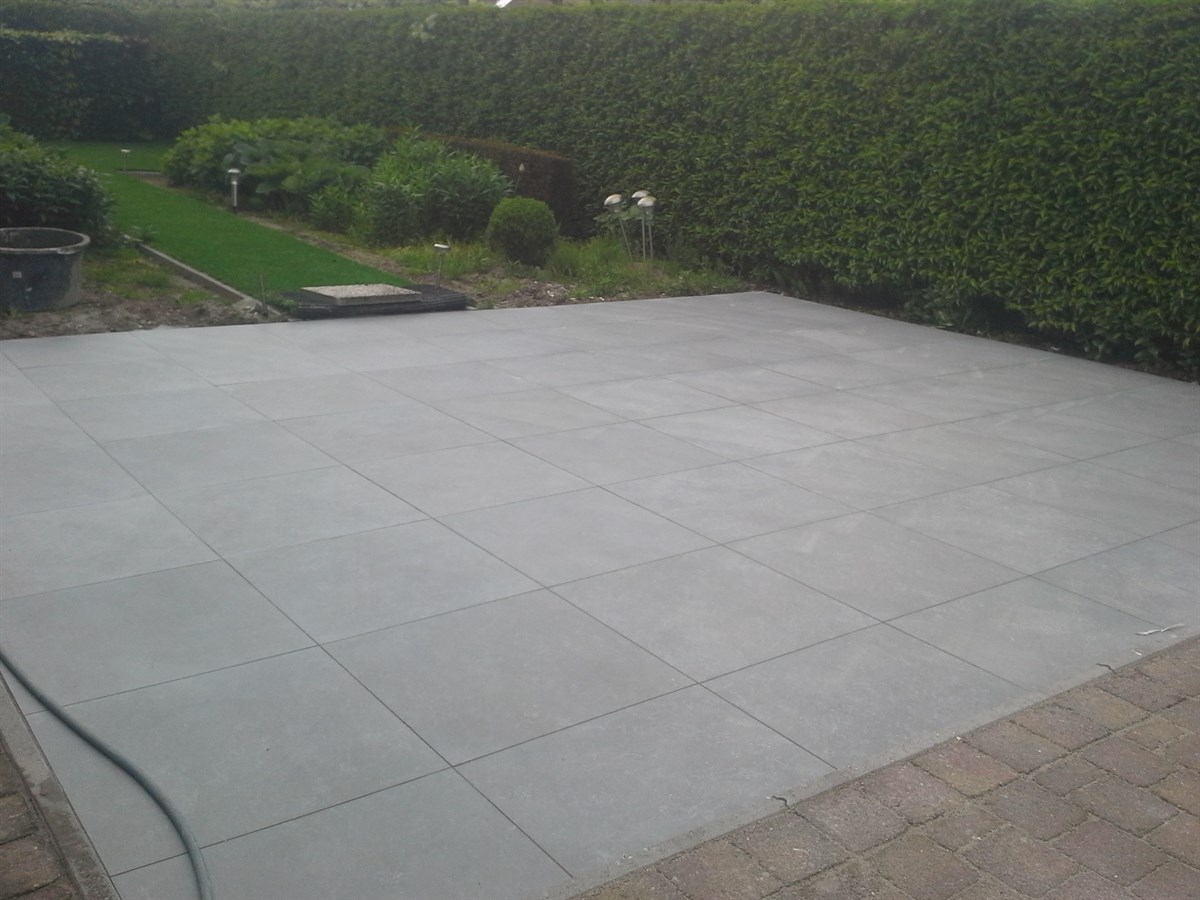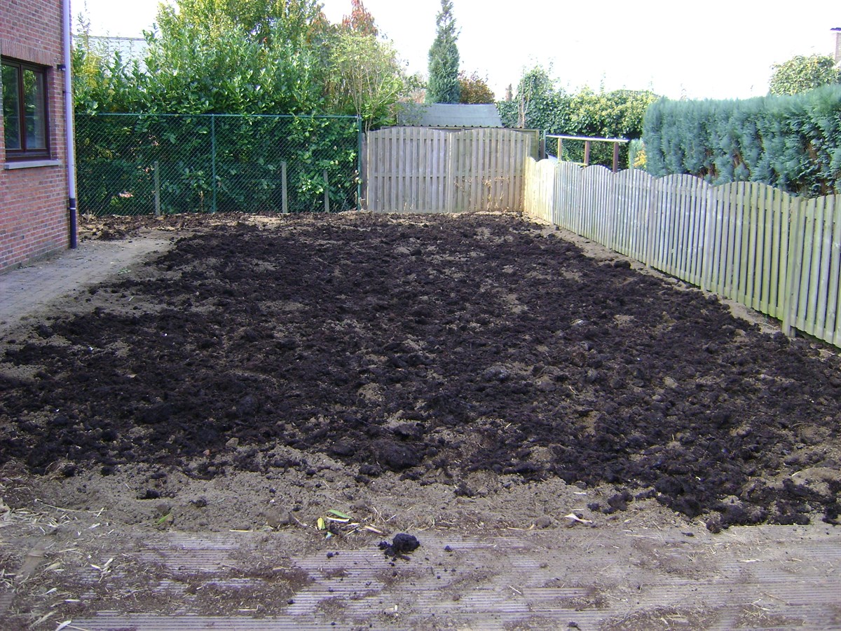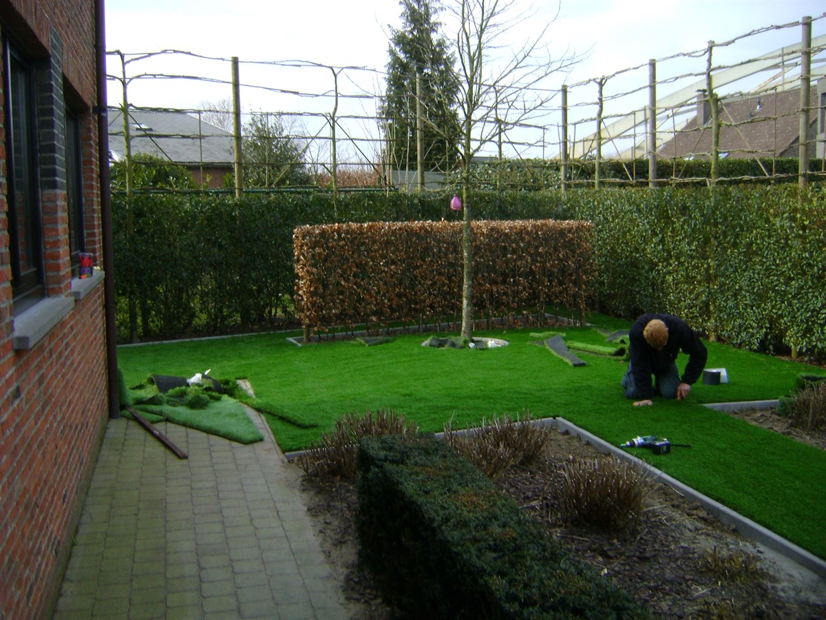 In een tweede fase, enkele jaren na de aanleg van de tuin, wou de eigenaar het natuurlijke gras vervangen door kunstgras en het oorspronkelijke terras in bankirai vervangen door een terras in keramische tegels. Om dit te realiseren werd eerst het volledige geheel uitgevlakt met gestabiliseerd zand om vervolgens het kunstgras en de tegels te plaatsen. Op deze manier is nu een knusse stadstuin gecreëerd met een minimum aan onderhoud.