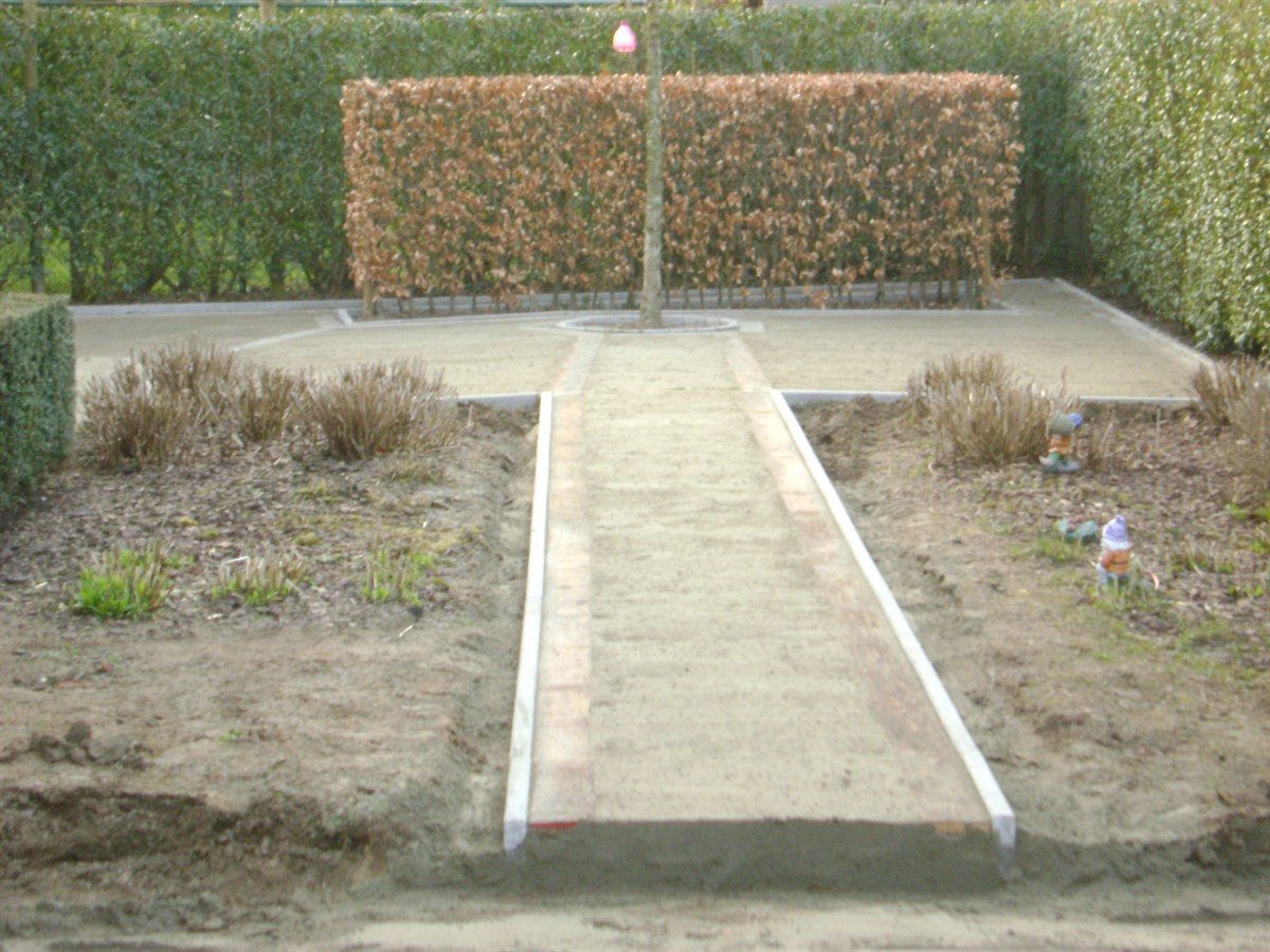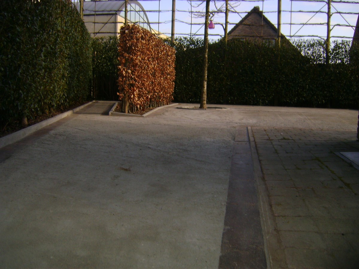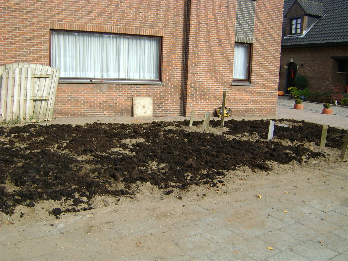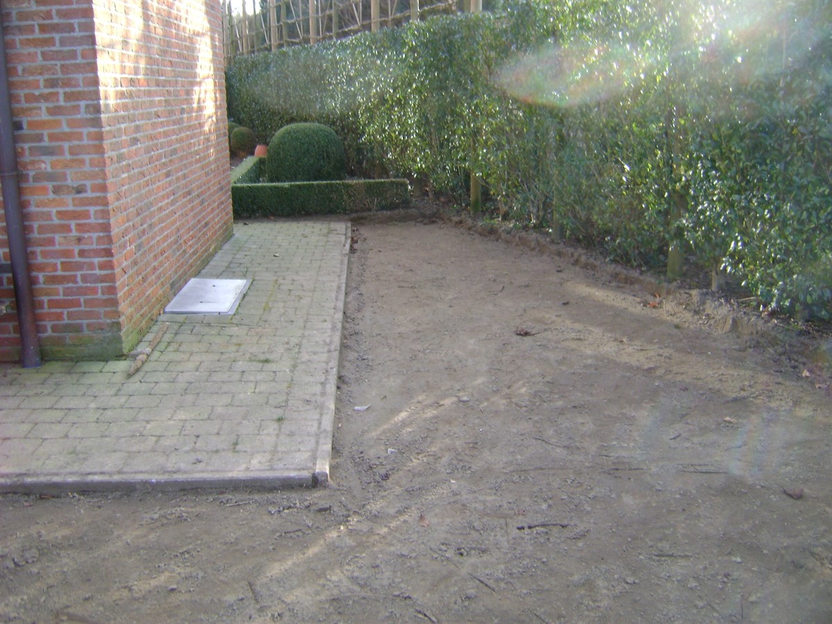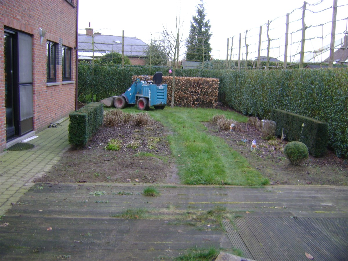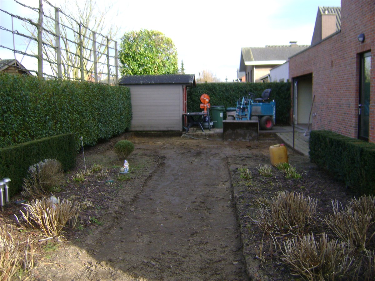 De tuin rond deze woning is gerealiseerd in twee fases. De eerste fase bestond uit de volledige tuinaanleg rondom, exclusief verhardingen. De bestaande tuin werd volledig opgebroken en een nieuwe werd aangelegd. Door de drukke agenda van de bewoonster, werd gekozen voor beplanting welke snel dichtgroeid. Op deze manier wordt de onkruiddruk verminderd. Door te werken met leibomen wordt de privacy van de bewoonster verzekerd.